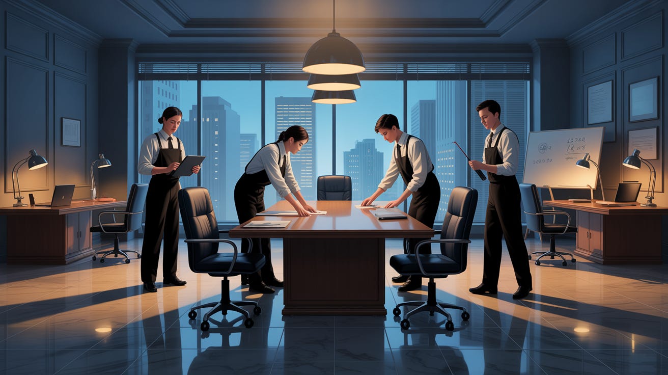 They have 4 hours to erase every trace of yesterday before the first executive arrives at 7am.