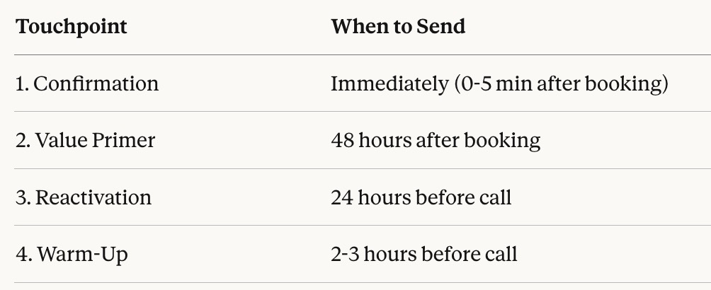 Talk soon.Touchpoint 2 — Value Primer (48 hrs after booking):