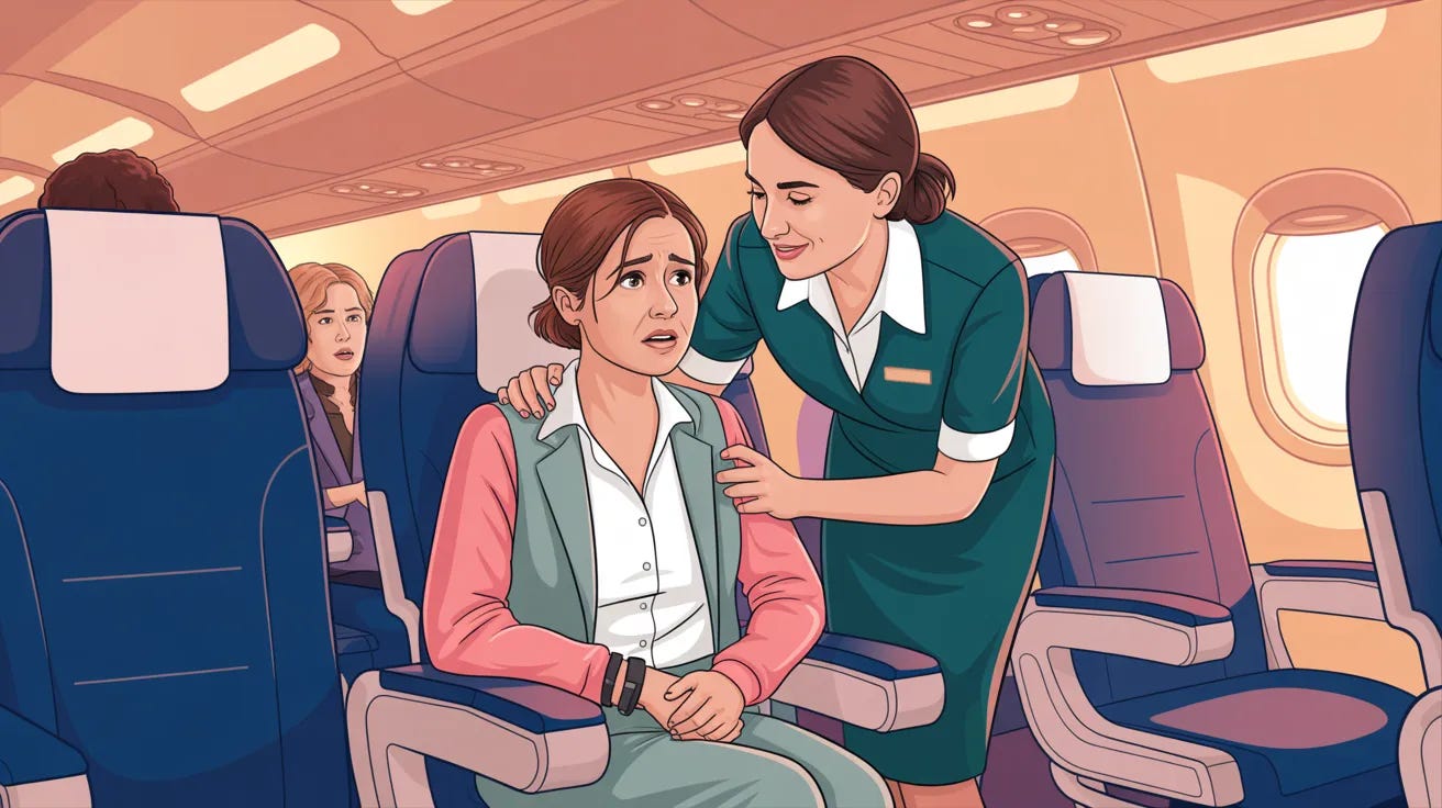 She didn’t need the plane to be different. She needed someone to tell her what to expect and check on her before she panicked.